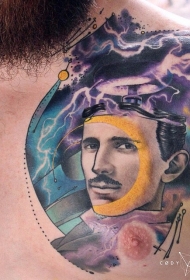 胸部超现实主义风格特斯拉塔人画像纹身图案
