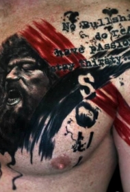 胸部彩色人像字母纹身图案