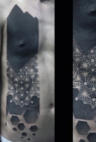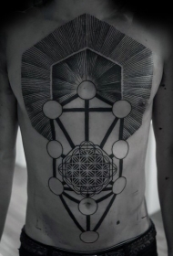 胸部和腹部大量的线条饰纹纹身图案