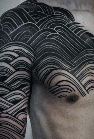 胸部和肩部线条波浪纹身图案