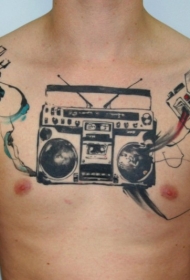 彩色胸部和肩膀收音机毛线相机纹身图案