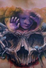 胸部彩色骷髅和婴儿肖像纹身图案
