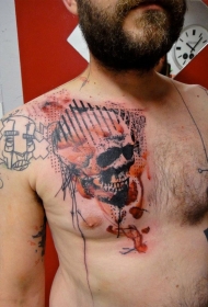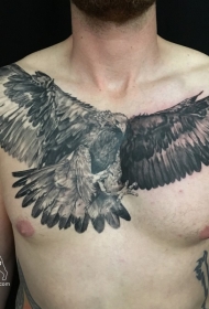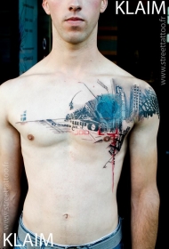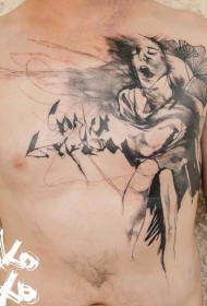 胸部和腹部彩色心脏与翅膀和匕首纹身图案