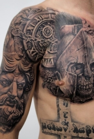 半甲彩色骰子和鳄鱼眼睛纹身图案