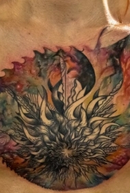 男性胸部彩色的花朵与华丽的装饰纹身图案