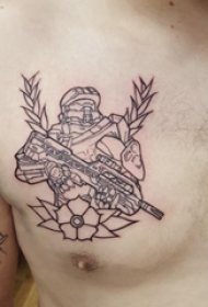 军人纹身图案 男生胸前军人和植物纹身图片