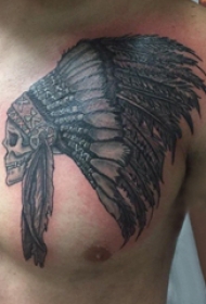印第安人纹身 男生胸部黑色的印第安骷髅纹身图片