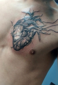 胸部纹身男 男生胸部黑色的心脏纹身图片