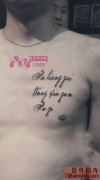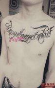 帅哥胸前花体英文纹身作品