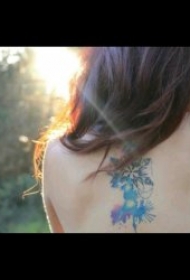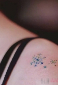 女生肩膀上彩绘渐变线条雪花纹身图片