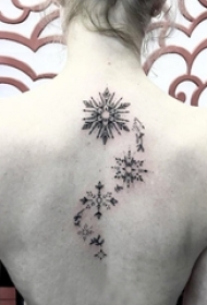 晶莹如玉的黑色简单线条唯美雪花纹身图案