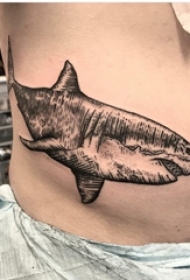 百乐动物纹身 男生侧腰上黑色的鲨鱼纹身图片