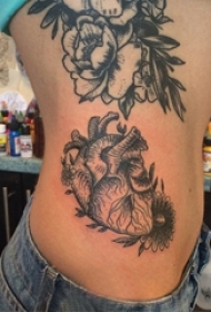 女生侧腰上黑灰素描点刺技巧创意心脏纹身图片