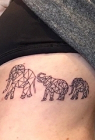 女生侧腰上黑色几何简单线条小动物大象纹身图片