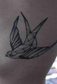 男生侧腰上黑色点刺几何简单线条小动物鸟纹身图片