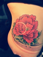 美女腰部个性巨大的蜥蜴花朵纹身图案