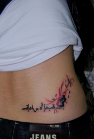 靓女腰部完美新潮的图腾凤凰字母纹身图案
