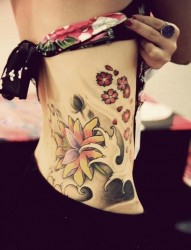 纹身520图库体推荐一款女性侧腰莲花纹身图案