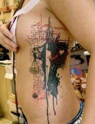 腰部之特别风格翅膀人物肖像三角形纹身图案