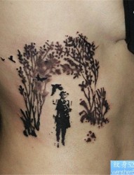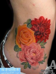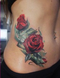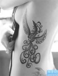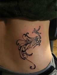 一幅女人侧腰个性鸟玫瑰花纹身图案