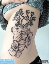 侧腰羚羊纹身作品