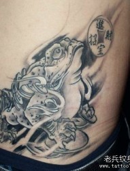 一幅腰部招财蟾蜍纹身作品