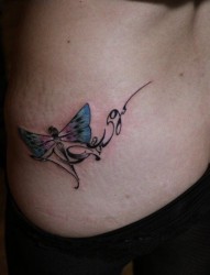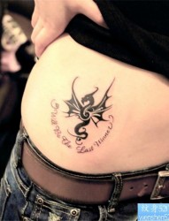 女人腰部蝴蝶英文字母纹身作品