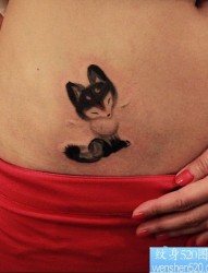 纹身520图库推荐一幅腰部水墨狐狸纹身作品