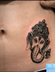 一幅腰部象神刺青图片