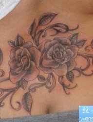 女人纹身图片:美女腰部蝴蝶玫瑰纹身图片作品