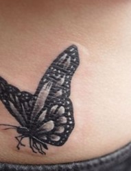 腰部纹身图片:腰部黑灰蝴蝶纹身图案