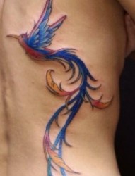 腰部纹身图片:腰部彩色小鸟纹身图案