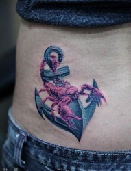 蝎子铁锚纹身图片:腰部彩色蝎子铁锚纹身图案