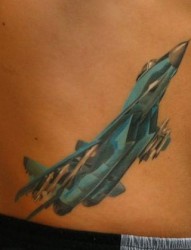 腰部纹身图片:腰部战斗机飞机纹身图案