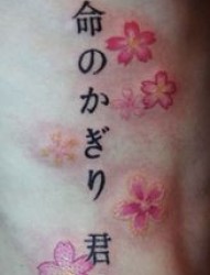 腰部纹身图片:腰部图腾文字樱花纹身图案