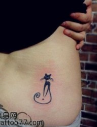 纹身520图库:后腰莲花猫咪纹身图片作品