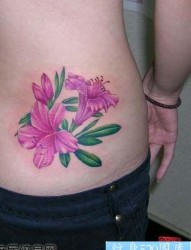 好看艳丽的腰部百合花纹身图片