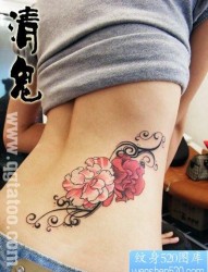 美女侧腰牡丹花纹身图片