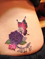 腰部蝴蝶花纹身图片