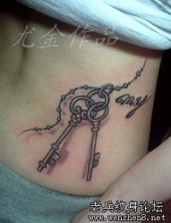 专业纹身:美女腰部钥匙文身图片作品