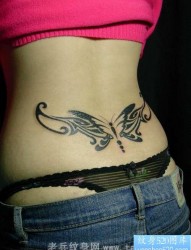 一幅野性的女人腰部蝴蝶图腾纹身(tattoo)作品