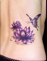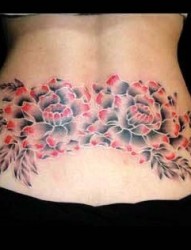 专业纹身会所:美女后腰蝴蝶莲花纹身图片作品