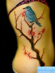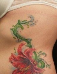 美女腰部唯美的蝴蝶藤蔓纹身图片