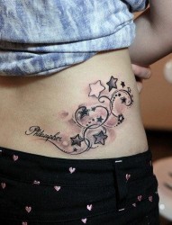 女人纹身图片:美女后腰五角星藤条纹身图片作品(经典)