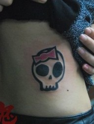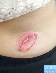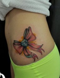 女孩子腰部潮流精美的钻石蝴蝶结纹身图片