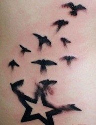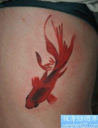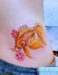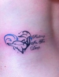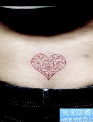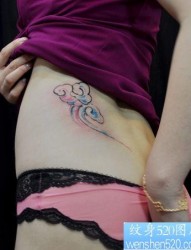 一幅女孩子腰部图腾爱心海豚纹身图片