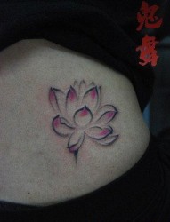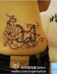 美女腰部唯美好看的莲花与佛珠纹身图片