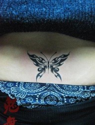 美女腰部漂亮流行的图腾蝴蝶纹身图片