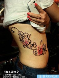 美女腰部精美漂亮的蝴蝶藤蔓纹身图片