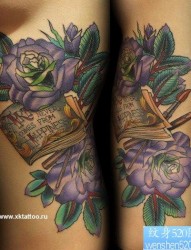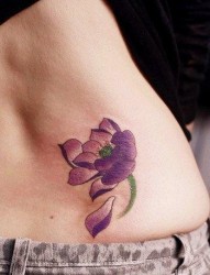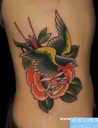 女人腰部潮流经典的欧美彩色玫瑰花纹身图片